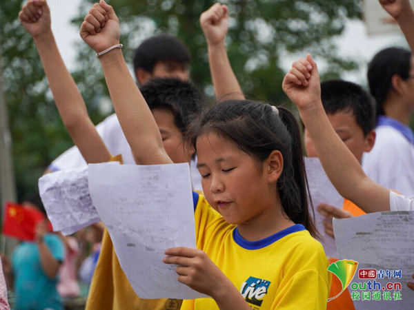 图为高年级组同学朗诵建党诗歌(中国青年网通讯员邓远帆摄)