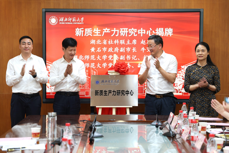 校党委常委、统战部部长肖六亿宣读“新质生产力研究中心”成立文件和专家咨询委员会委员名单。赵凌云、牛文俊、校长雷儒金、副校长王赛玉共同为新质生产力研究中心揭牌。