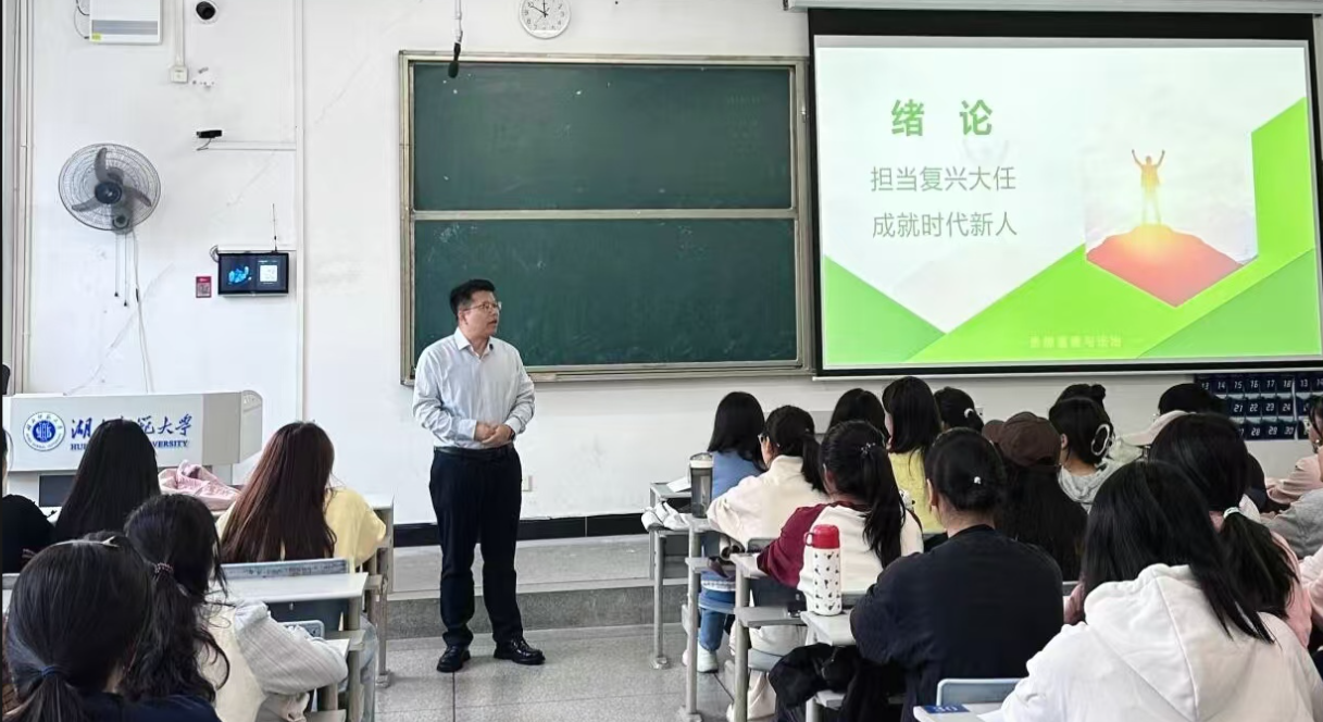 图为该校党委书记走进思政课课堂,为新生讲授开学第一课