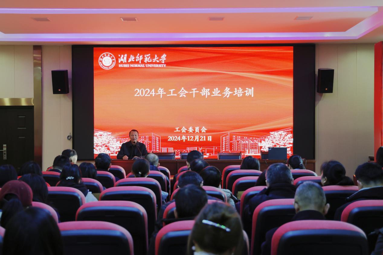 本网讯 为深入学习贯彻习近平新时代中国特色社会主义思想和党的二十届三中全会精神,贯彻落实习近平总书记关于工人阶级和工会工作的重要论述及习近平总书记考察湖北重要讲话精神,进一步提升必赢官网工会干部的政治理论素养与工作水平,学校工会于12月21日在美术学院多媒体报告厅举办了工会干部业务培训班。学校第九届工会委员会委员、各分工会主席、常务副主席50余人参加会议。活动由校工会常务副主席李涛主持。