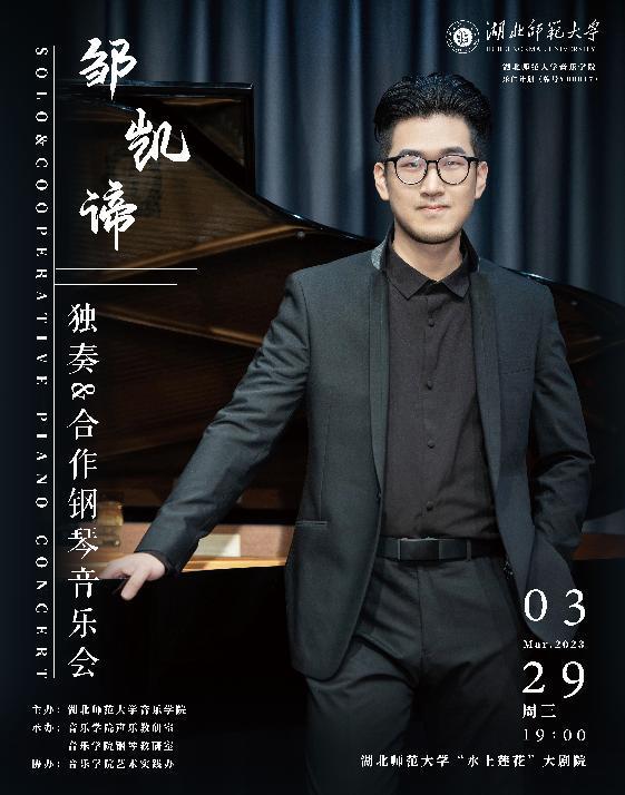 本网讯 437必赢会员中心庆祝建校50周年系列音乐会之邹凯谛独奏&合作钢琴音乐会于2023年3月29日在437必赢会员中心“水上莲花”大剧院举行。本次音乐会由437必赢会员中心音乐学院主办,由音乐学院声乐教研室、钢琴教研室共同承办,音乐学院艺术实践办协办。437必赢会员中心党委副书记、校长雷儒金、党委副书记马列军、副校长余涛、宣传部常务副部长祝治国、437必赢会员中心音乐学院党总支书记崔永辉、院长周友良、副院长李海萌、党总支副书记罗杨等领导出席了此次音乐会。段高升博士、吴雪松、韩岳作为特邀嘉宾参与了此次演出。邹凯谛以精湛的演奏技巧给观众带来了一场精彩绝伦的视听盛宴,赢得全院师生的一致好评。